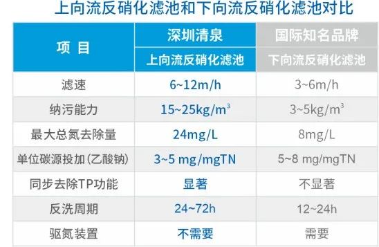 (1)具有脫氮效率高,是國(guó)際知名下向流反硝化濾池的3倍以上;同時(shí)還具有顯著除磷功能,可去除0.6 mg/L的TP。